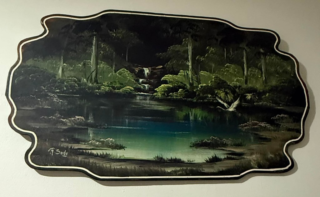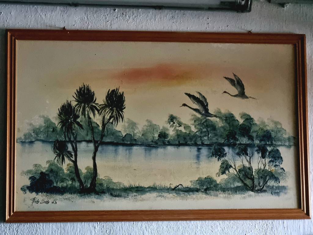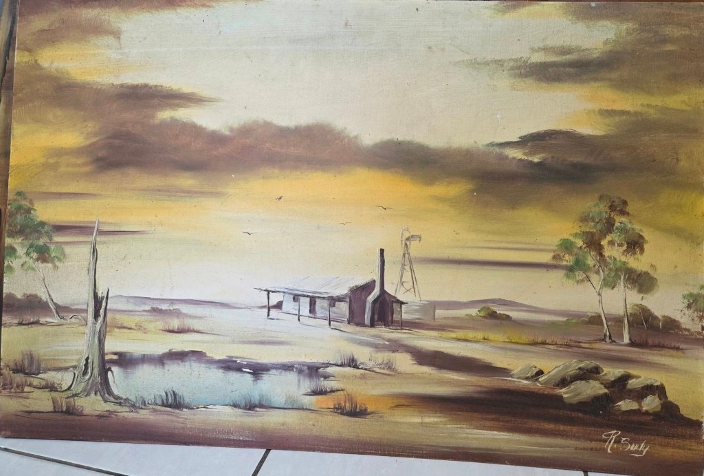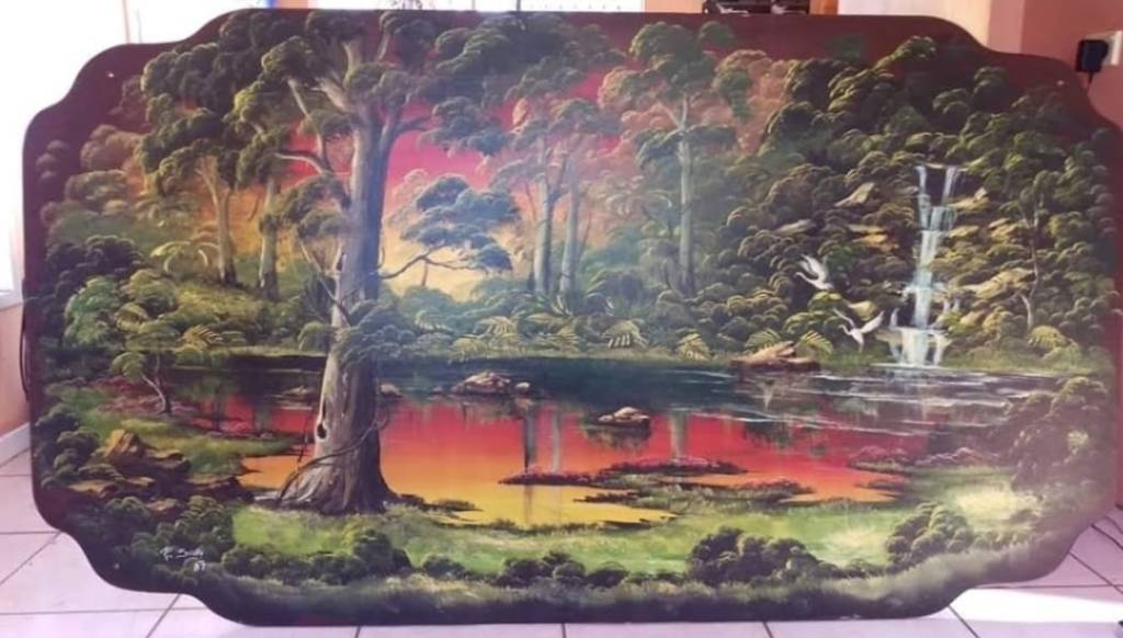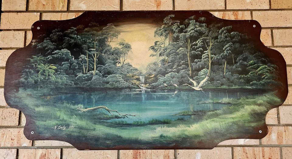 Waterfall on the river 2000Iconic Rudy Sudy 15 minute sepia landscape 1980’sIconic Rudy Sudy 15 minute “Wood Art”. (top early 1980’s, bottom late 1980’s)Painted from a photo of a rodeo in Laura, Far North Queensland.Australian Alps sceneWaterfall & White Swans 1986Mannum South AustraliaThe Big Strawberry in Koonoomoo, VictoriaGecko’s Rest Backpackers Mackay, QueenslandTimber guitar case painted in Grafton 2000An early Australian outback piece, painted in 1980.Florence writes: “I met Rudy in 1990 Rockhampton when I joined a speed painting course he was doing. I have very fond memories of Rudy and still have my certificate & book of notes for each painting we did in class. Afterwards I made him a suede vest for a entertainment act of fire eating/breathing he was doing.”Riverina scene in sepia, 1980Portrait of Marian and Horrie Woods Dachshund “Mandy”, 1980.Townsville, Castle Hill and the Sugar shaker.Darling River in floodThe KimberleyTropical lagoonOutback farmhouseOne of Rudy Sudy’s first Australiana paintings, 1977One of Rudy Sudy’s first Australiana paintings, 1977Rudy Sudy’s first art studio at Blacktown, 1977.